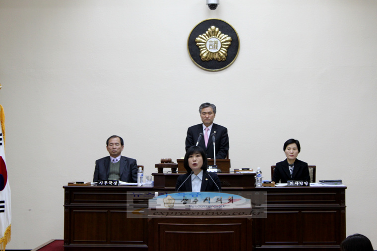 | ▲ 임성란 의원이 제127회 공주시의회 시정질문을 통해 각종 사업현장에 대한 관리감독 소홀로 인한 혈세낭비의 문제점 등을 지적하고 있다. |