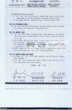 이와 함께 106~107페이지에 지난해 4월 17일 체결한 평택시-재활복지대-공주대간 지역사회 발전과 양 대학 발전 도모를 골자로 한 '교류협력협약서'를 첨부했다.