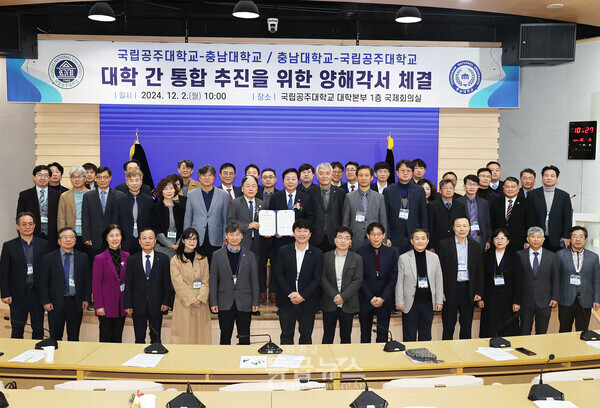 국립공주대학교(총장 임경호)와 충남대학교(총장 김정겸)는 12월 2일(월) 오전 10시 국립공주대학교 대학본부에서‘국립공주대학교-충남대학교 대학 간 통합 추진을 위한 양해각서’에 서명했다.