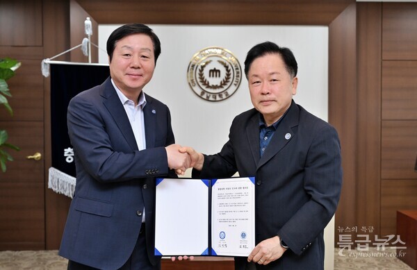 국립공주대 임경호 총장과 충남대 김정겸 총장은 8월 1일(금) 오후 3시, 충남대 대학본부 접견실에서 ‘통합대학 직원의 인사에 관한 합의문’에 서명했다.