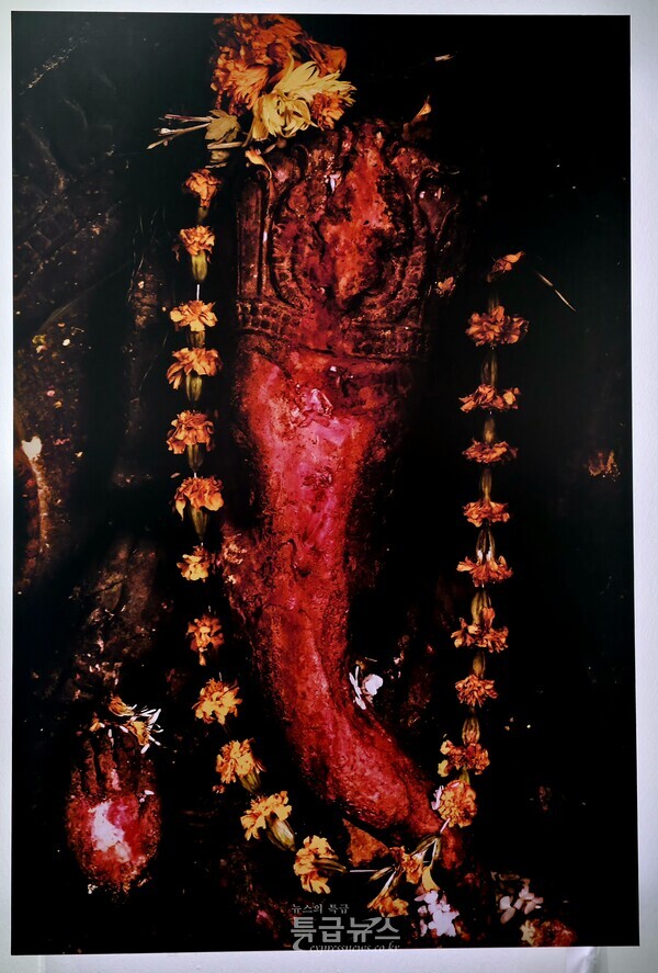 김혜식 작가는 “‘신전(神殿)’은 우리가 한때 공유하거나, 숨어들던 이제는 사라진 것들이 돌아가 머무는 기억의 바깥 공간이다. ‘샤먼’이라 부를 수밖에 없는 다른 공간, 바친 꽃으로부터 기억을 더듬었다.”라고 말했다.