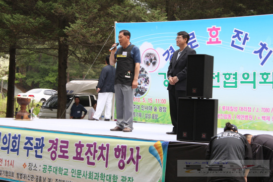 15일 공주대학교 인문사회과학대학 앞 잔디밭에서 펼쳐진 이날 경로잔치에는 지역 노인 600여명이 참석한 가운데 성황리에 진행됐다.