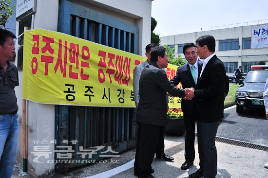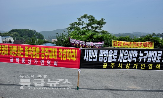 이날 공주시 사회단체회원들도 도지사의 장기농공단지 방문 장소에 나와 충남대와 공주교대의 통합을 반대하는 현수막을 들고 나와 통합반대의지를 표명했다.