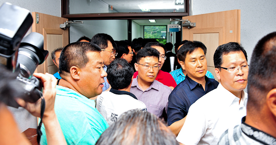 한편 이날 공주시의회 고광철 의장, 박병수·이창선 의원을 비롯한 장원석 강북발전협의회장, 안도성 공주시 상가번영회장, 최영학 강남발전협의회장을 비롯한 회원 등 시민 30여명은 교대 3층 소회의실에서 모여 결과를 끝까지 기다렸으며, 한때 진입을 위해 몸싸움을 벌이기도 했다.