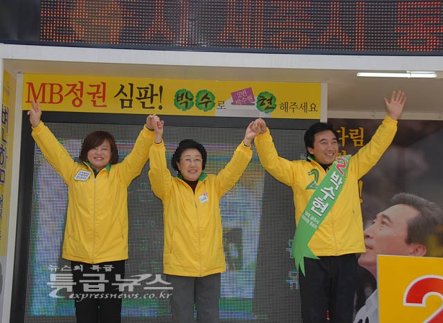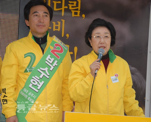 또한 세종시와 공주시 통합과 관련, 한 대표는 “세종시를 대한민국 중심 도시로 만들어야 하고, 배후도시인 공주시와 세종시의 상생발전 장기 비전 마련을 당 차원에서 약속드린다”며 “저 한명숙과 세종시 기획, 설계자인 이해찬 세종시 후보, 초대 행복도시건설청장 출신 이춘희 세종시장 후보, 삭발 단식으로 세종시를 지켜낸 박수현 후보가 함께 손잡으면 공주시를 더욱 살맛나는 도시로 만들 수 있을 것”이라며 민주통합당의 지지를 호소했다.