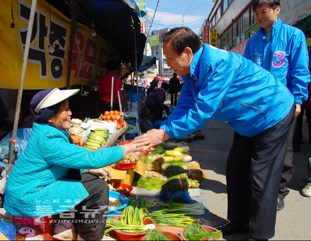 심대평 자유선진당 대표와 이인제 자유선진당 공동선거대책위원장은 6일 오후 1시 공주시 산성동 구 터미널 앞에서 윤완중 후보의 당선을 위한 지원유세를 펼쳤다.