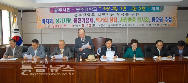 ‘행복한 동행’추진본부(공동추진위원장 나태주 공주문화원장, 최창석 공주교육지원청 교육장, 서광수 공주대학교 교수, 정지연 공주시기업인협의회장)는 7일 오전 11시 30분 공주대학교 본관 3층 대회의실에서 세 번째 기자회견을 갖고 현재 진행된 추진경과 및 발전기금모금 현황, 그리고 오는 5월 11일과 12일 개최되는 행사계획에 대해 발표했다.
