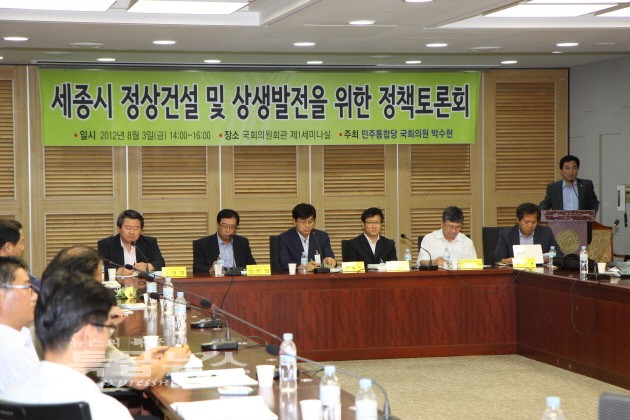 박수현 의원(공주시, 민주통합당 충남도당위원장) 이 주최한 ‘세종시 정상건설 및 상생발전을 위한 정책토론회’가 3일 오후 2시 국회의원회관 제1세미나실에서 열렸다.