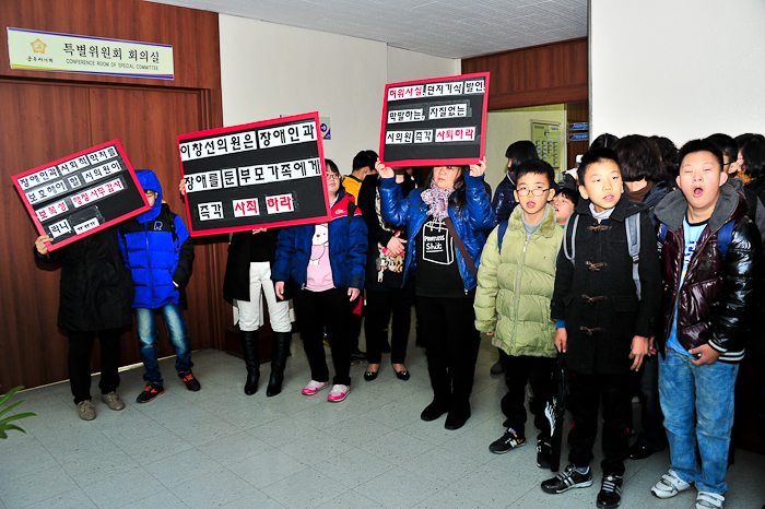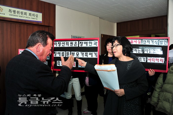 이들은 이날 “어려운 서민, 그리고 사회적 약자를 보살피고, 누구보다 이들을 위해 산다고 말잔치를 늘어놓던 이창선 시의원이 지난 11월 27일 장애를 가지고 어렵게 살고 있는 우리 장애인부모를 짓밟고, 냉대하는 만행을 저질러 분노하고 있다”고 밝혔다.