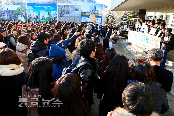 이들은 이날 “학적의 주인인 학생들이 반대를 하고 있음에도 불국하고 이를 무시하고 비민주적인 절차에 의해 추진되고 있는 교명변경을 즉각 중단하라”고 외쳤다.