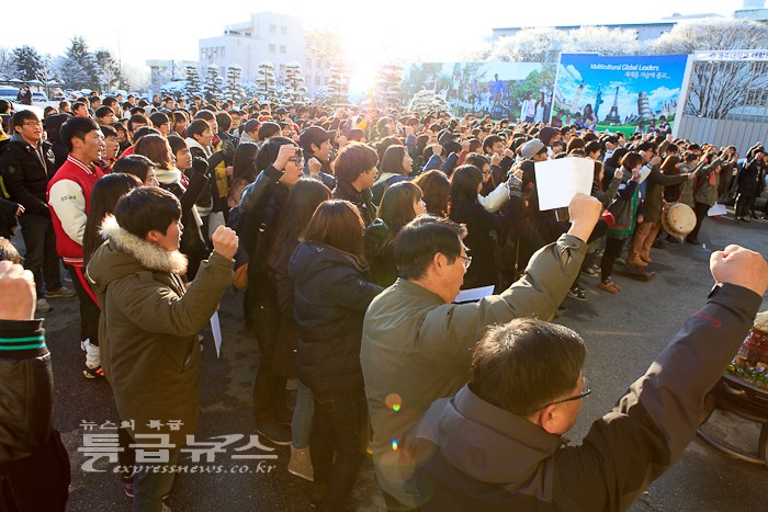 이 궐기대회는 6일 오후 4시 대학본부가 교명변경을 추진하고자 교명재창출추진위원회를 개최하려고 하자 열리게 된 것.